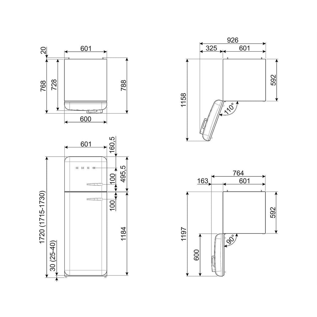 A gap of 175 mm must be left on the hinged side of the product to allow the door to open.