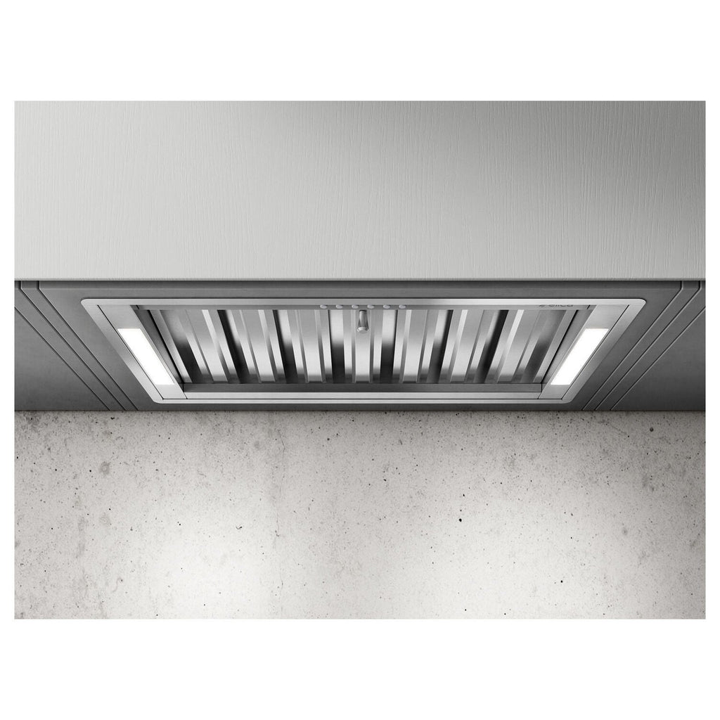 This built-in canopy hood from Elica is 82cm wide, finished in stainless steel, and has a maximum extraction rate of 750m³ per hour. It is designed to be built into a chimney breast or wall unit, alternatively, it can be built into a false canopy which matches your kitchen design.
