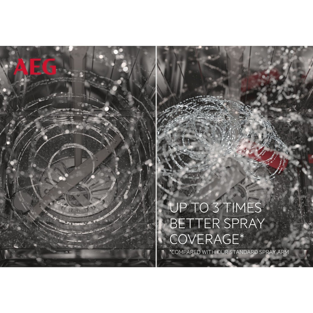 Need a powerful dishwasher that fits into smaller kitchens? This AEG 7000 slimline dishwasher is just 45cm wide, perfect for compact spaces, yet still cleans up to 9 place settings. Your dishes will come out spotless every time thanks to its special spray arms that reach every corner. Plus, with GlassCare, your delicate glasses are held safely, so they stay scratch-free. And because it runs so quietly, you can enjoy clean dishes without any loud noise.