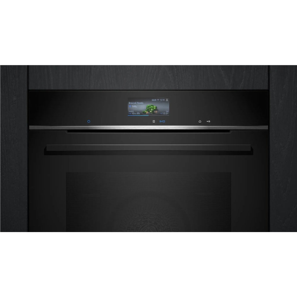 iQ700 built in single oven features the 4D Hot Air system, so you can achieve perfect results on every level. The innovative TFT display will give you a complete overview and full control over your oven's functions. With humidClean Plus, fast cleaning dirt is softened beforehand by vaporizing soapy water. It can then be removed more easily.