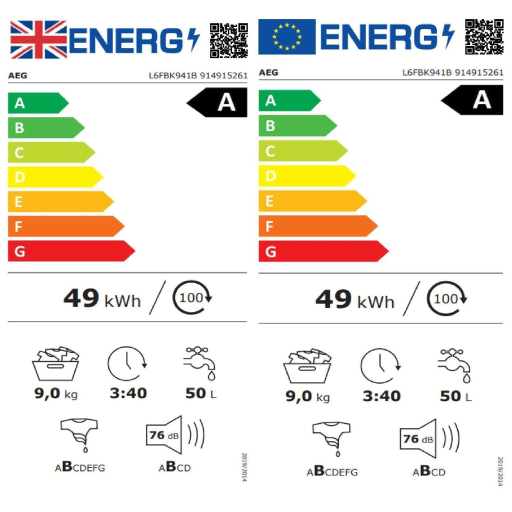 Make laundry simple with the AEG 6000 ProSense washing machine. Its large 9kg drum capacity is perfect for family loads, meaning fewer washes. The clever ProSense tech weighs your clothes and uses just the right amount of water and energy for each wash. This saves you money on bills and helps keep your clothes looking good for longer. It's also A-rated for energy, so it's very efficient.