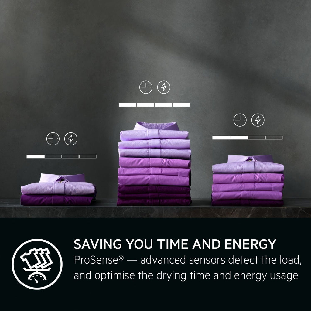 This clever feature saves you money and keeps your clothes looking good for longer. Special sensors check how wet your clothes are and only use the heat and time needed for each load. This means no wasted energy, lower bills, and your favourite items stay in great shape.