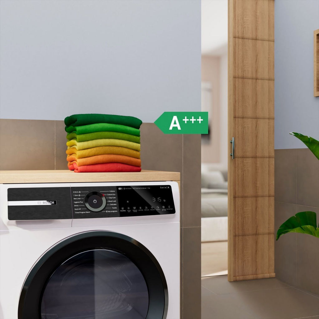 Make laundry day easier and save money with the Bosch Series 6 WQH246D9GB Heat Pump Tumble Dryer. Its large 9kg capacity is perfect for busy homes, handling big loads with ease. Rated A+++ -10% for energy, it uses less power, helping to cut down your bills. With Smart Wi-Fi, you can control your drying from your phone, while Auto Dry sensors stop the cycle when clothes are perfectly dry, protecting them and saving energy.