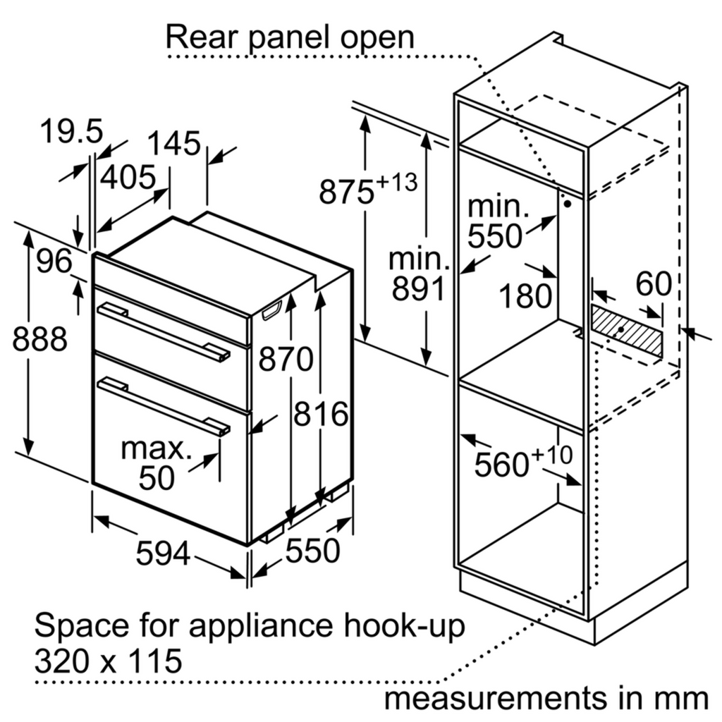 Niche dimension (hxwxd): 875 mm - 888 mm x 560 mm - 568 mm x 550 mm