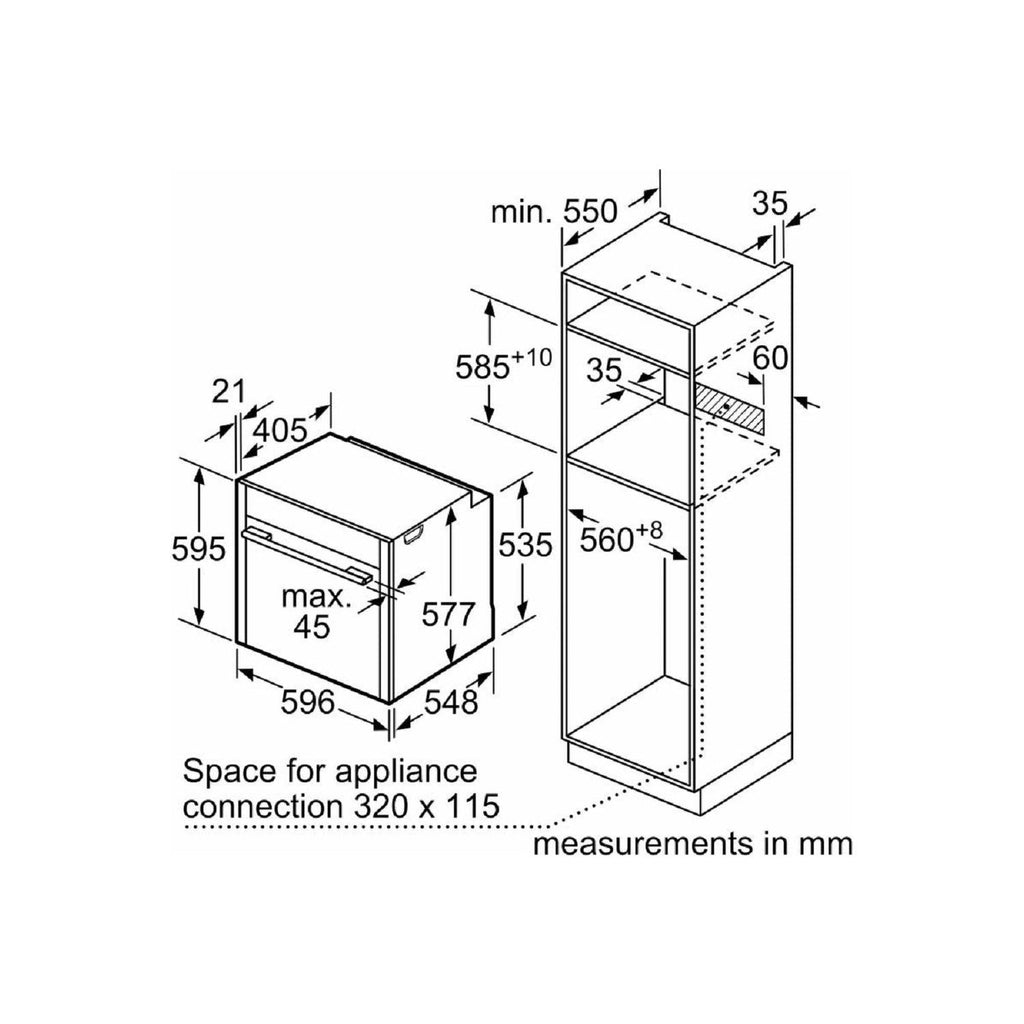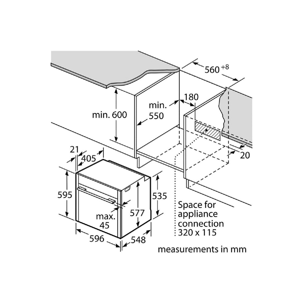 Niche dimension (hxwxd): 585 mm - 595 mm x 560 mm - 568 mm x 550 mm