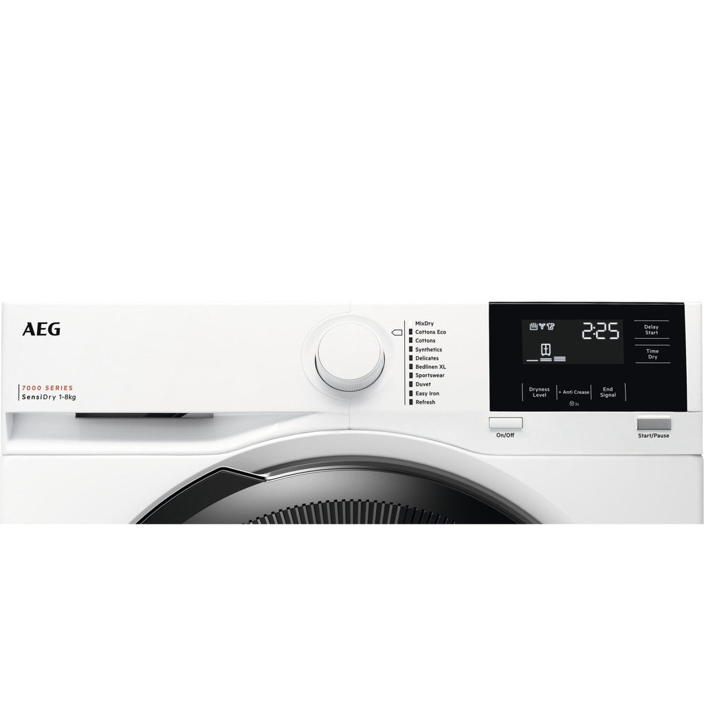 This AEG 8kg heat pump tumble dryer makes drying your clothes simple and energy efficient. It uses clever heat pump tech and is rated A++, meaning it uses much less power, saving you money on your energy bills, and is gentler on your clothes, helping them last longer.